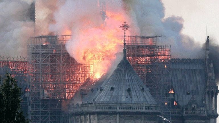 Σύμφωνα με τον δημοσιογράφο Σωτήρη Διμπινούδη (Sotiri Dimpinoudis) o οποίος βρίσκεται στο Παρίσι, κατέρρευσε η στέγη του Καθεδρικού Ναού. Μέχρι στιγμής δεν υπάρχουν πληροφορίες για τραυματίες, καθώς σύμφωνα με τον κ. Διμπινούδη όλες οι εργασίες αποκατάστασης του ναού ολοκληρώνονται έως τις πέντε το απόγευμα και οι εργάτες αποχωρούν εκείνη την ώρα.