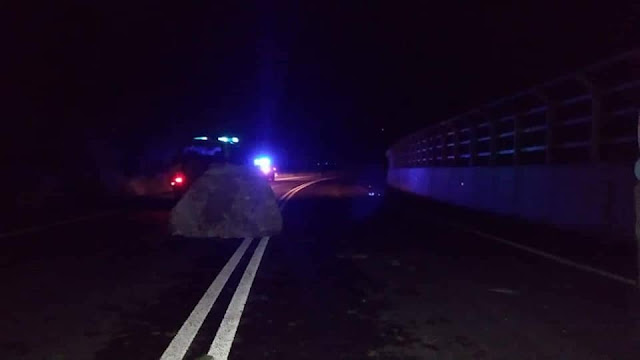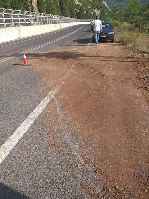 Μετά τη σεισμική δόνηση που πραγματοποιήθηκε χθες 12/06/2019 και ώρα 00:54π.μ., σημειώθηκαν δύο μεγάλες καταπτώσεις βράχων στο οδόστρωμα της Π.Ε.Ο. Λιβαδειάς – Αράχοβας, χλμ θέση 23,4.