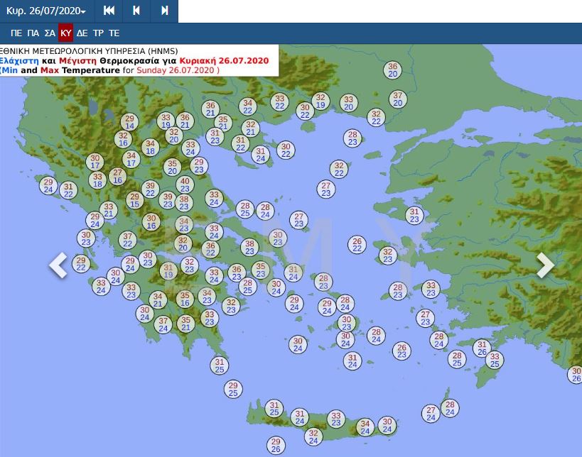 Καιρός: Aίθριος. Ανεμοι: Από βόρειες διευθύνσεις 6 τοπικά 7 μποφόρ. Θερμοκρασία: Από 23 έως 35 βαθμούς Κελσίου.