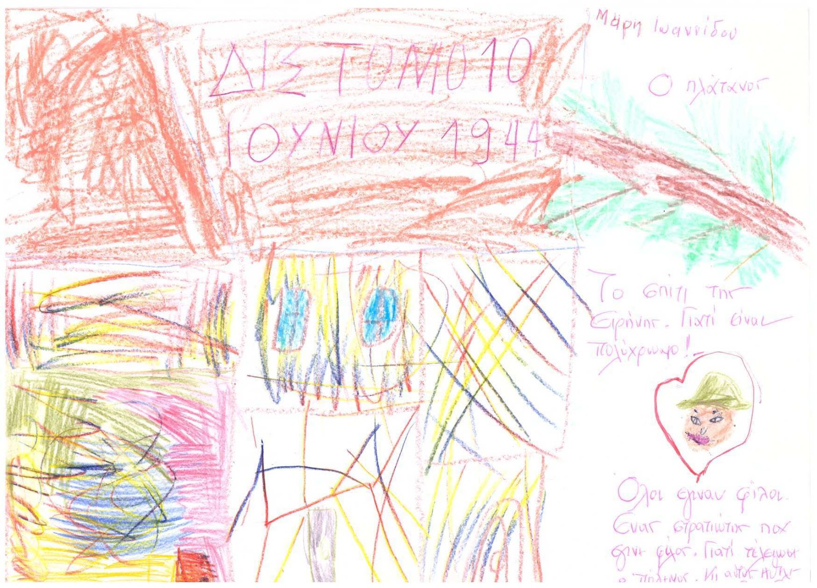 Τα παιδιά θέλησαν να αποδώσουν στην Κάτω Πλατεία- τον τόπο που τα γερμανικά στρατεύματα κατοχής επέλεξαν να φωτογραφηθούν στις 10 Ιουνίου 1944 για λόγους προπαγάνδας- τα χαμένα της χρώματα.