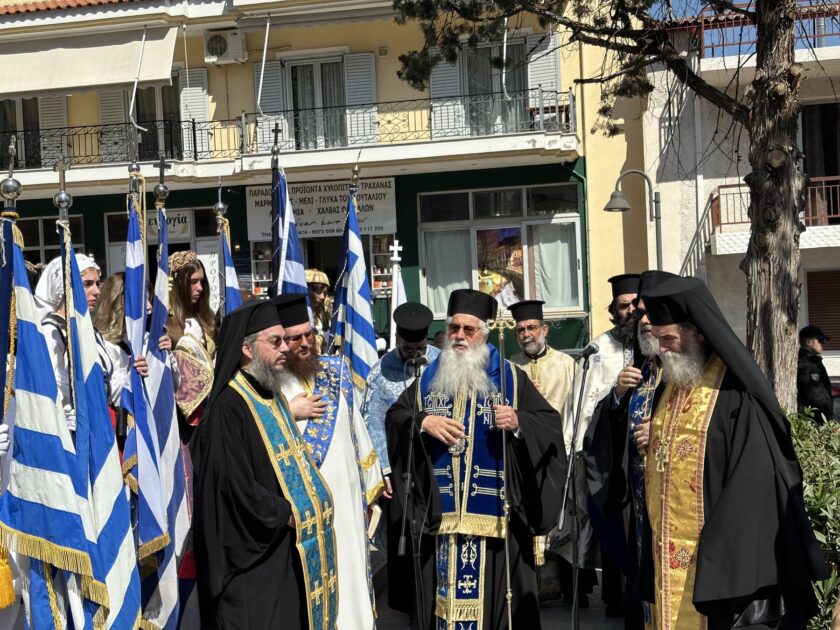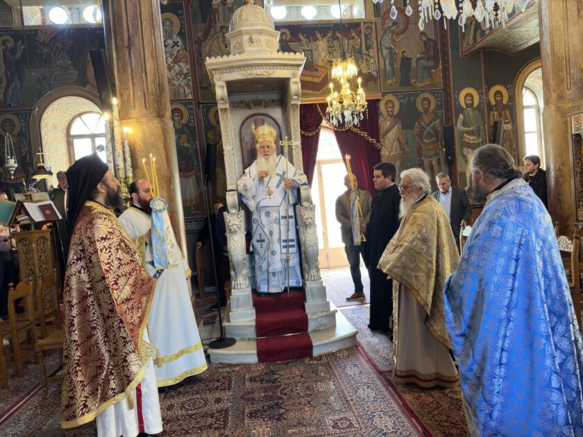 Με λαμπρότητα εορτάστηκε στη Λιβαδειά το Σάββατο 25 Μαρτίου 2023 ο Ευαγγελισμός της Θεοτόκου και η εθνική επέτειος της 25ης Μαρτίου. Ο Σεβασμιώτατος Ποιμενάρχης μας κ. Γεώργιος τέλεσε τη Θεία Λειτουργία στον πανηγυρίζοντα Ιερό Ναό Ευαγγελισμού της Θεοτόκου Λεβαδείας. Το θείο λόγο κήρυξε ο πανοσ. αρχιμ. π. Ιερώνυμος Κυριαζής.